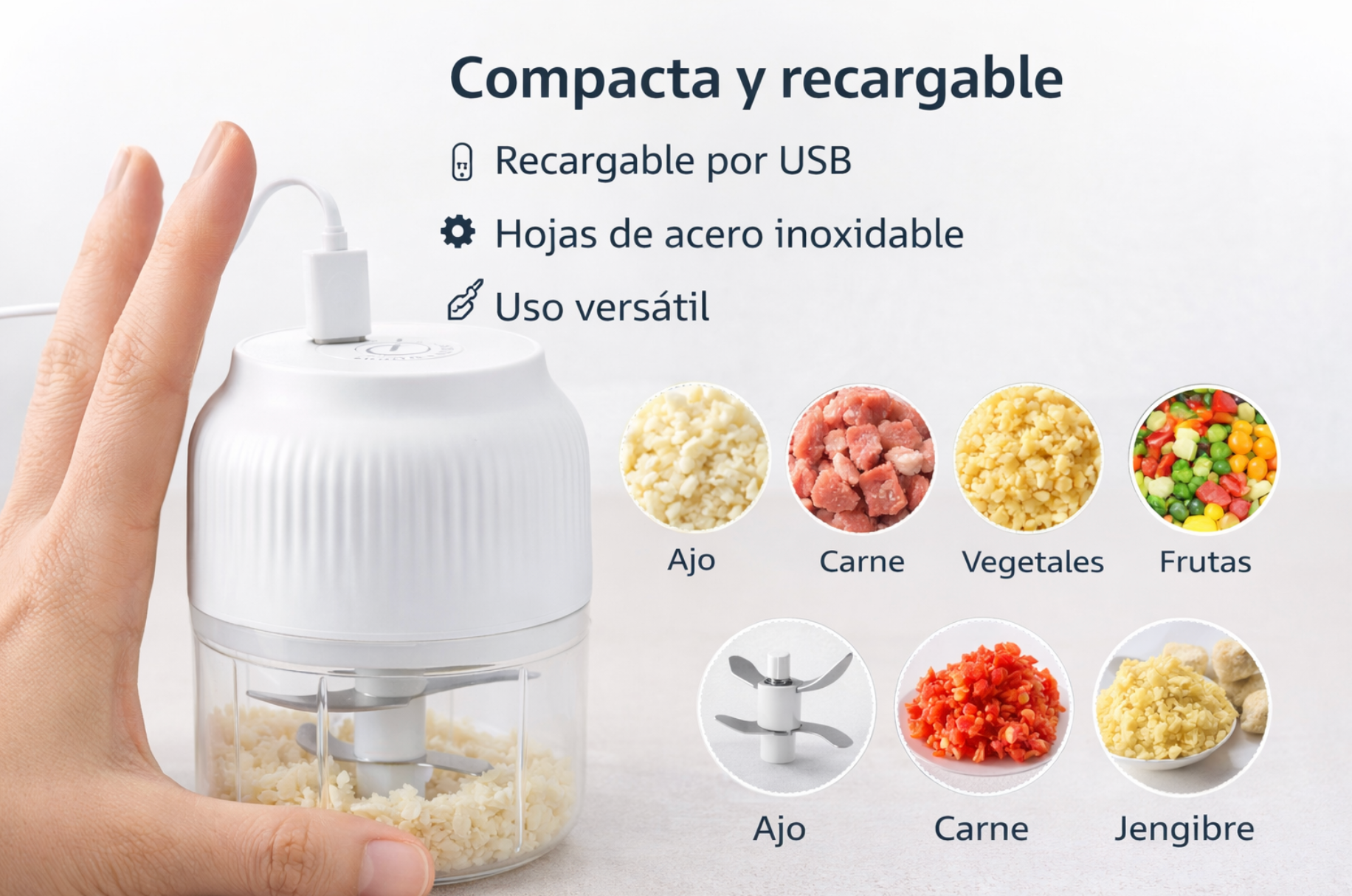 - 🖱️ Uso con un solo toque para un picado uniforme, rápido y sin esfuerzo.